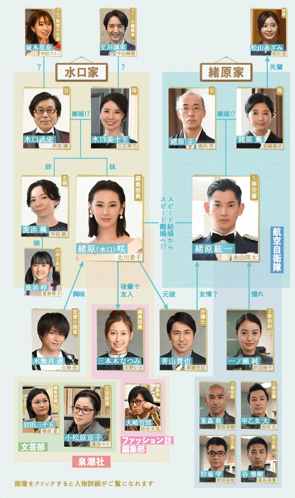 사키 미즈구치(키타가와 게이코 역)는 현대적이고 진보적인 가정에서 자란 뛰어난 패션 잡지 편집자입니다. 5년 동안 사귀었던 남자친구에게 차인 후, 그녀는 전 남자친구보다 먼저 결혼하기로 결심합니다. 어느 날, 그녀는 친구와 함께 산에 가서 우연히 항공자위대 항공구조대의 에이스 오바라 고이치(나가야마 에이타 역)를 만나게 됩니다. 그는 엄격한 군인 가정에서 자랐고 전형적인 이성애자입니다. 비록 사키와 코이치는 극과 극의 대립자이지만, 두 사람은 호화로운 결혼식이 끝난 후 신혼으로 행복한 삶을 시작할 수 있습니다고 믿고 연애를 하지 않고도 빠르게 결혼합니다.