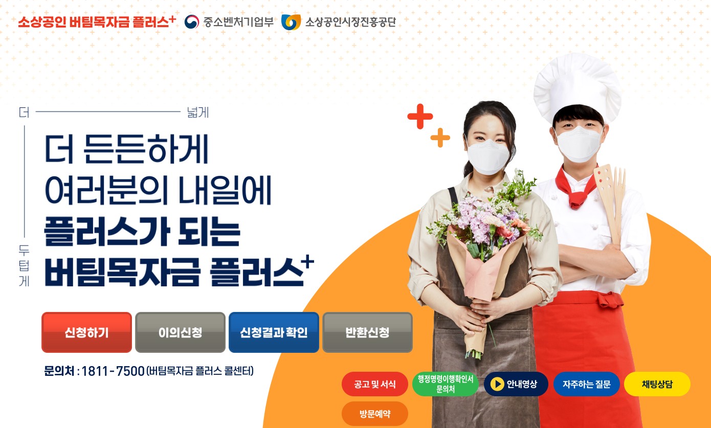 소상공인 버팀목자금 플러스 안내 문자를 받으셨다면 사이트에 접속해 소상공인 버팀목자금 플러스 신청이 가능합니다.