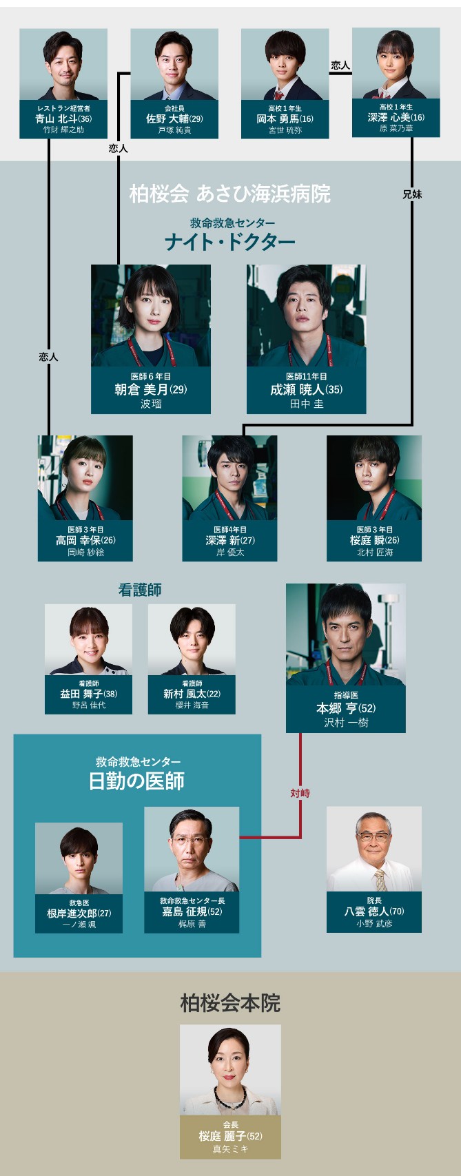 2024년도부터 시행되는 의사의 근로 방식 개혁이, 의료계를 고민하게 하고 있습니다.「원칙 960시간」까지의 시간외 노동의 상한이 근무의에 적용되어 심각한 일손 부족이 외쳐지는 일본의 구급 의료입니다.몇 년 후에 닥친 개혁이지만 혁신적인 대응책은 아직 발견되지 않았습니다.본작에서는"주야 완전 교대제"를 시험적으로 도입한 병원을 무대로, 야간 구급 전문의 의사 「나이트 닥터」들에게 스포트를 맞추어 이야기를 그려 갑니다.