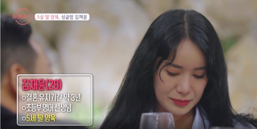 돌싱글즈2 김채윤 직업은 초등부 영어 선생님으로 나이는 28세, 결혼 유지기간 약3년, 5세딸양육, 승무원이 되기 위해 중국유학 갔다가 중국인과 결혼