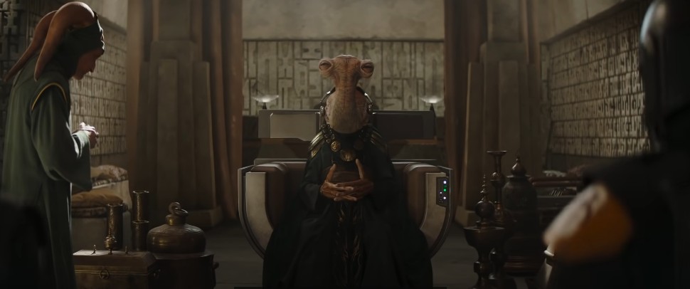모스 에스파 외곽의 자바 궁전 위로 쌍둥이 해가 떠오르는 타투인에 열려 있습니다. 어두운 복도를 지나 빈 왕좌를 지나 보바 펫이 있는 복원실로 갑니다. 그는 카미노 초기, 아버지 장고의 죽음, 그리고 사르락의 배에서 보낸 시간을 회상하며 꿈을 꿉니다. 그는 죽은 제국 스톰트루퍼를 발견하고 그의 공기 탱크를 사용하여 숨을 고릅니다. 그리고 나서, 펫은 Sarlac의 위벽을 뚫고 화염방사기를 발사합니다.