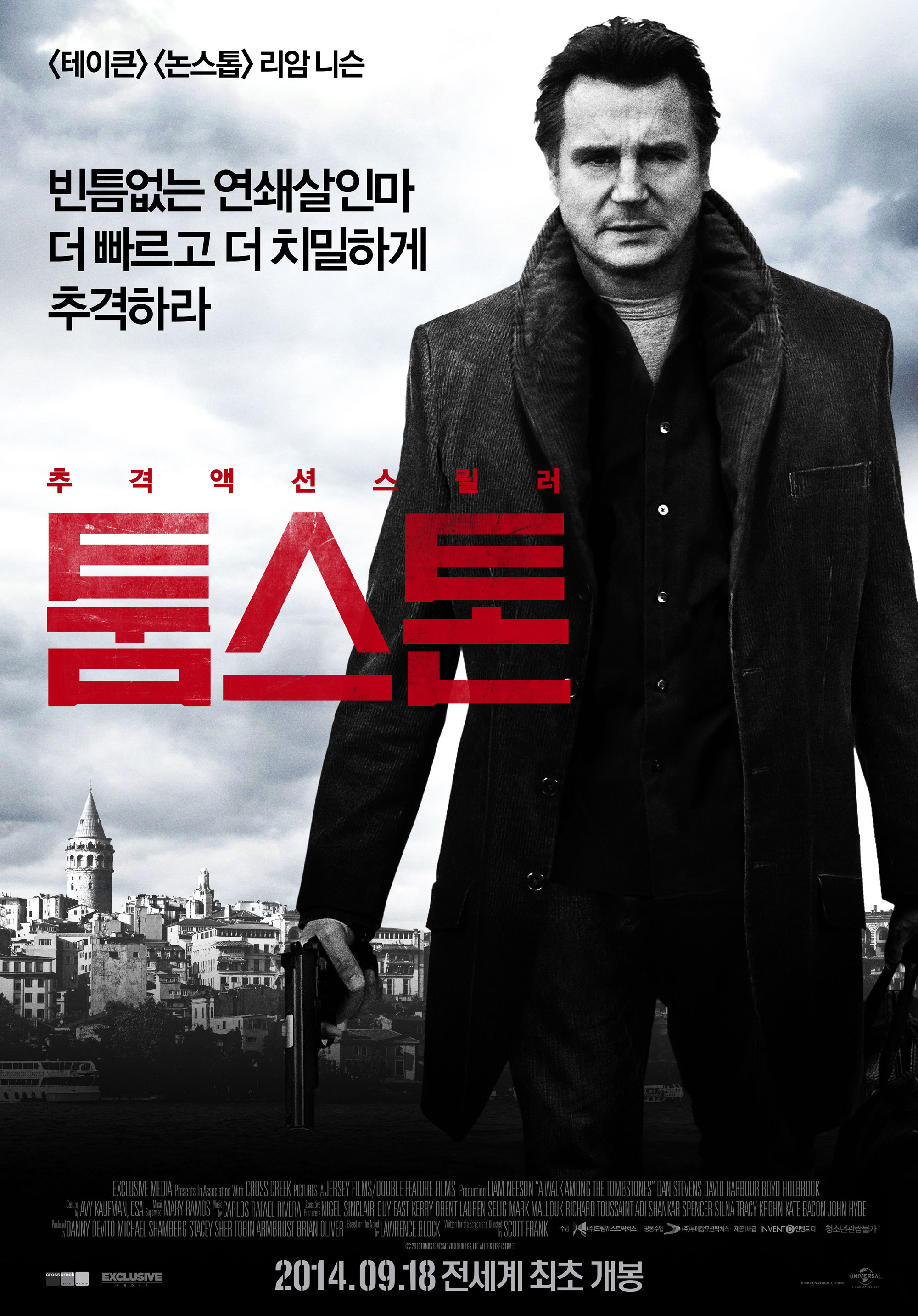 전직 경찰 매트 스커더는 이제 사설탐정입니다. 그는 마약상으로부터 그의 아내를 납치한 남자들을 찾아달라는 요청을 받았습니다. 돈을 주고도 죽인 것 같아요 스커더는 거절합니다. 하지만 그 남자는 나중에 그를 찾아가서 그의 아내가 어떻게 살해당했는지 이야기합니다. 스커더가 그 일을 맡아요. 그는 자신이 찾는 사람들이 이런 짓을 한 적이 한두 번이 아니고 그들이 잡은 모든 것이 마약상과 연관되어 있다고 생각합니다. 그가 포기하려고 할 때 그들이 다른 여자를 붙잡고 스커더가 그녀가 살아서 돌아왔는지 확인하려고 합니다._볼만한 영화, 재밌는 영화추천