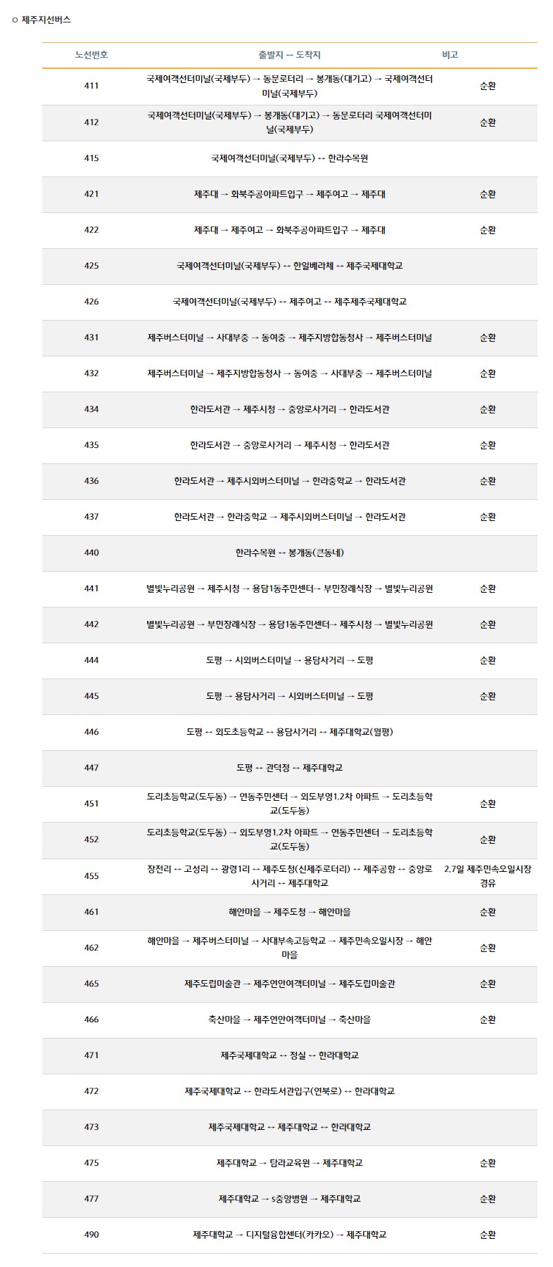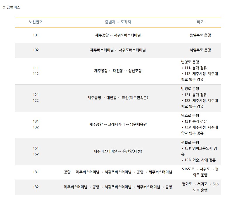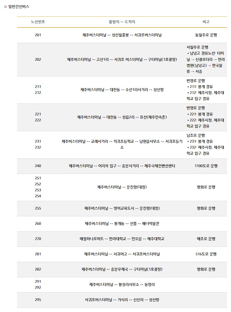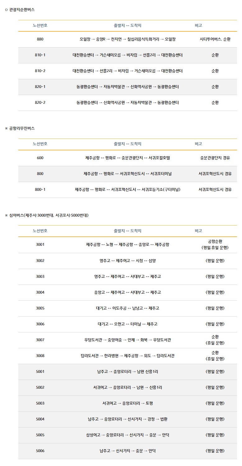 제주도 대중교통 이용안내 - 제주버스노선
