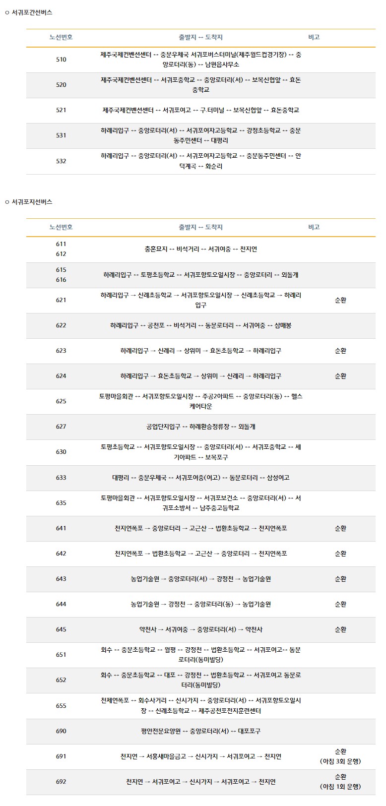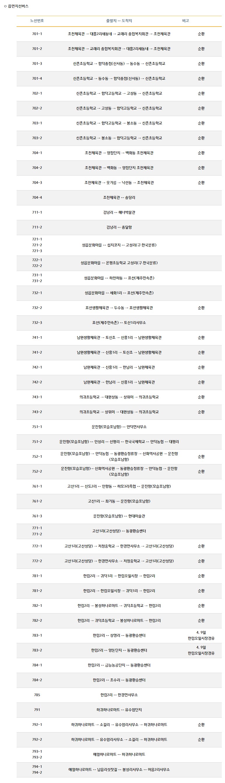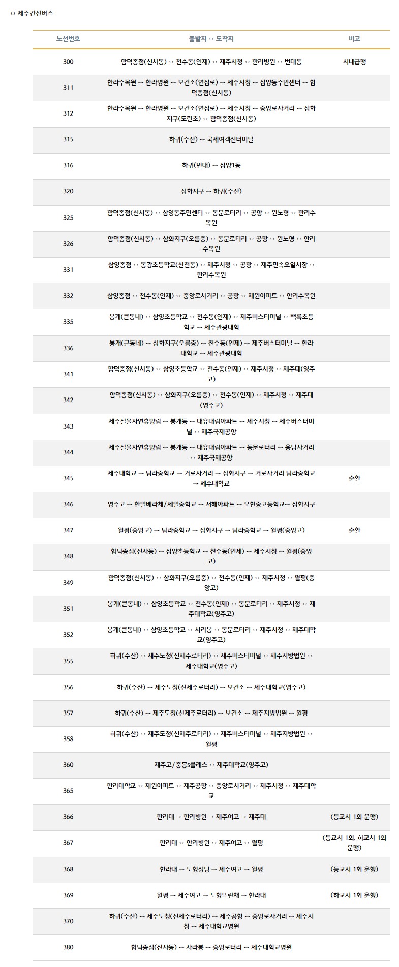 제주도 대중교통 이용안내 - 제주버스노선