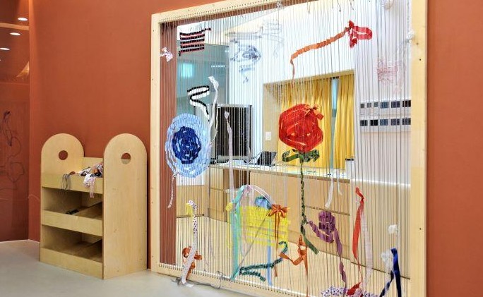 어린이들이 그림을 그리거나, 알록달록한 실로 놀거나, 천으로 재미있게 놀 수 있는 놀이 공간이 3개 있습니다.