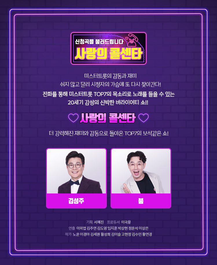 - 여러분이 듣고 싶은 트로트는 물론, 주제에 맞는 노래를 많이 신청해주세요!
