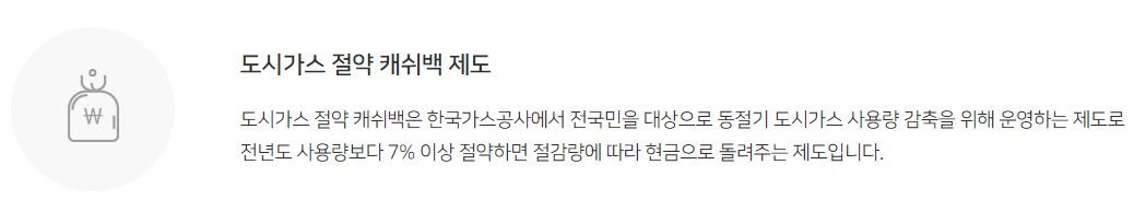 도시가스 절약 캐쉬백이란 한국가스공사에서 전국민을 대상으로 동절기 도시가스 사용량 감축을 위해 운영하는 제도로 전 국민이 대상입니다. 그동안의 많은 지원 정책들이 대부분 형편이 어려운 분들께 초점이 맞춰져 있었다면 이번 캐쉬백 제도는 소득에 상관없이 누구나 받을 수 있는 환급금입니다.