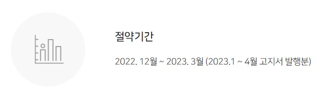 우선 절약 기간이 어떻게 되는지부터 살펴보겠습니다. 절약 기간은 2022년 12월부터 2023년 3월까지 절약하시면 됩니다. 고지서 발행분으로 따져보면 2023년 1월부터 4월까지 고지서라고 보시면 됩니다.