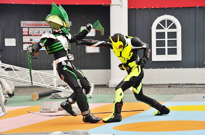 | 인공지능 탑재인형 로보, 휴머기어 개발다양한 직장에 파견해, 인간의 일하는 방식에 일대 개혁을 가져온 히덴 인텔리젼스의 창업자로 해 사장·히덴고레노스케(니시오카 토쿠마)가 사망.비전 인텔리젼스에서는, 부사장의 후쿠조에(코지마 카즈야)가 신사장 취임에 평범하지 않은 의욕을 나타내고 있었다. 한편, 잘나가는 개그맨을 목표로 하는 어떤 사람(타카하시 후미야)은, 유원지의 영업에서도 관객은 거의 제로.휴마기아의 복근 붕괴 타로(나카야마 킨니군)에게 힘의 차이를 보여지면, 지배인의 네즈(카네다 아키오)로부터도 해고를 선고받고 침울해져 버린다. 그런 어느 사람 앞에 히덴인텔리젼스의 사장 비서, 휴머기아의 이즈(츠루시마노 아이)가 나타났다.이즈에게 이끌려, 어떤 사람이 온 것은, 후쿠조에들 임원이 모인 히덴인텔리전스의 회의실. 코레노스케의 유서를 공개하기 위해, 히덴 코레노스케의 손자인 어떤 사람을 불러들인 것이었다. 코레노스케는, 휴매기아가 누군가에 의해서 폭주, 인류가 위기에 직면하는 미래를 예언.그를 위해 신임 사장만이 사용할 수 있는 제로 원 드라이버와 프로그래즈키를 제시, 그리고 신임 사장에는 후쿠조에가 아닌, 무려 어느 사람을 지명한다. 시끄러운 복첨들 임원들이었지만, 사장이 될 생각이 없는 어느 사람은 얼른 퇴실.죽은 아버지 기유(야마모토 코우지)를 열심히 웃기려던 어린 시절을 생각하고, 코미디언이 되겠다고 다시 다짐하는 어떤 사람은 할아버지 고레노스케의 초상에 슬며시 사죄하는 것이었다. 재차 유원지의 스테이지에 온 어느 사람이었지만, 슌(나카가와 다이스케)에 의해서 데이터를 고쳐 쓴 복근 붕괴 타로가 폭주.베로 서머기어로 변신해 사람들을 덮치기 시작했다. 대패닉이 된 유원지에 대 인공지능 특수기관 A.I.M.S.(에임스)도 도착. 증식해 폭주하는 휴머기어에 대해 간(오카다 류타로), 유이아(이타 히로에) 등은 총격을 개시한다. 파괴되어 가는 유원지에, 사람들을 웃는 얼굴로 만들겠다는 꿈을 빼앗기고 비통한 외침을 하는 네즈 지배인.그런 네즈의 꿈을 비웃는 벨로사머기어에게 어떤 사람의 분노가 폭발한다.혹자는 이즈로부터 제로원 드라이버와 프로그래밍 키를 받으면 가면라이더 제로원으로 변신! 압도적인 파워를 구사하며 벨로 서머기어를 격파한다. 가면라이더 제로원의 활약도 있어, 유원지의 계속을 고객에게 약속하는 네즈 지배인.그런 네즈와 기뻐하는 아이들의 웃는 얼굴을 본 어느 사람은, 코미디 뿐만이 아니라 「이렇게 웃는 방법도 있는 것인가」라고 인식을 새롭게 하면, 한 번은 거부한 비전 인텔리젼스의 사장이 되어 싸울 것을 맹세하는 것이었다. |