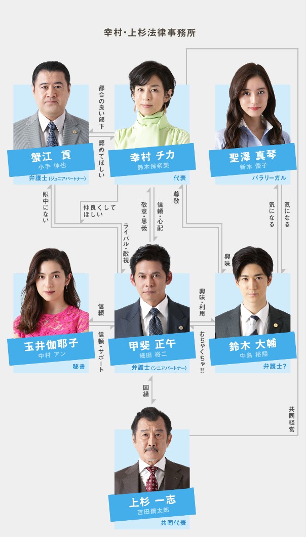 | 오다 유지 おだゆうじ | 織田裕二 나카지마 유토 なかじまゆうと | 中島裕翔 아라키 유코 あらきゆうこ | 新木優子 나카무라 안 なかむらあん | 中村アン 코테 신야 小手伸也 | Kote Shinya 요시다 코타로 よしだこうたろう | 吉田鋼太郞 스즈키 호나미 すずきほなみ | 鈴木保奈美 |