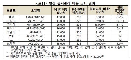 [공기청정기 순위] 공기청정기 추천 - 유지관리비용 비교