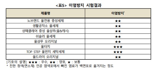 의류용 중성세제 추천 - 품질 비교시험 종합평가표