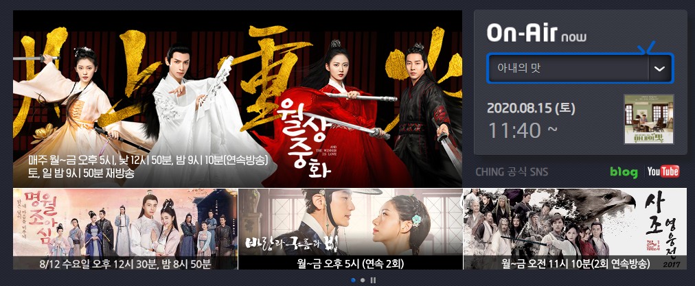 채널칭 편성표 다시보기 줄거리 월상중화 주원장 황제의여인 신조협려2014 명월조아심