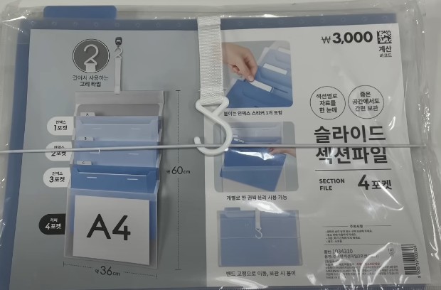 다이소 추천템 슬라이드 파일, 걸이형 섹션파일 3포켓