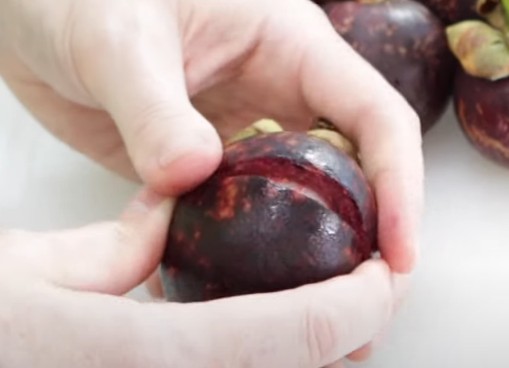 망고스틴 중앙 부분을 가로로 돌려가며 칼집을 넣어주고 양손으로 잡고 비틀어 껍질을 제거면 됩니다. 망고스틴 까는법, 먹는법 어렵지 않습니다.