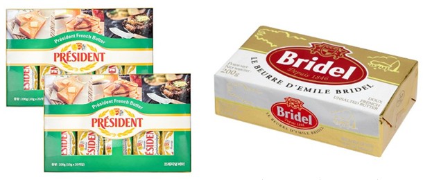 - 프레지덩가염버터 : 고소하고 담백한 맛, 구이로 먹으면 풍미가 좋음, 부드러운 질감