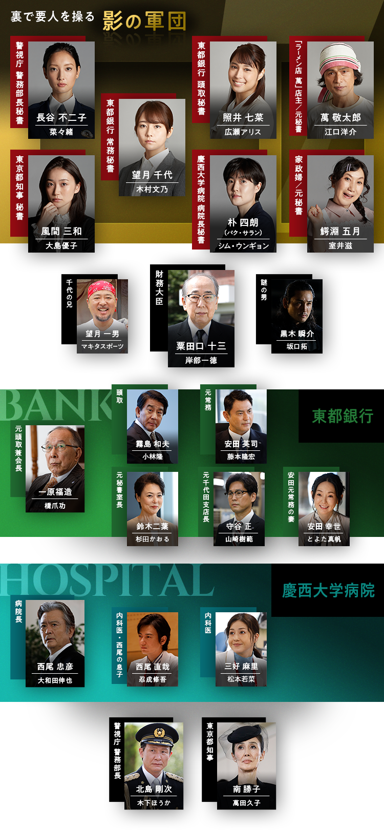 한편, 케이사이 대학병원 병원장 비서이자 해커의 재능 있는 박사랑(심은경)은, SNS에서 나나나가 이름이나 화상과 함께 전 행장, 신 행장의 애인으로 노출되어 있는 것을 발견해, 토우시 은행의 상무 비서 모치즈키 치요(키무라 후미노)에게 보고. 유언비어라고 일축했지만, 누가 이런 일을 했는지가 마음에 걸리는 치요…