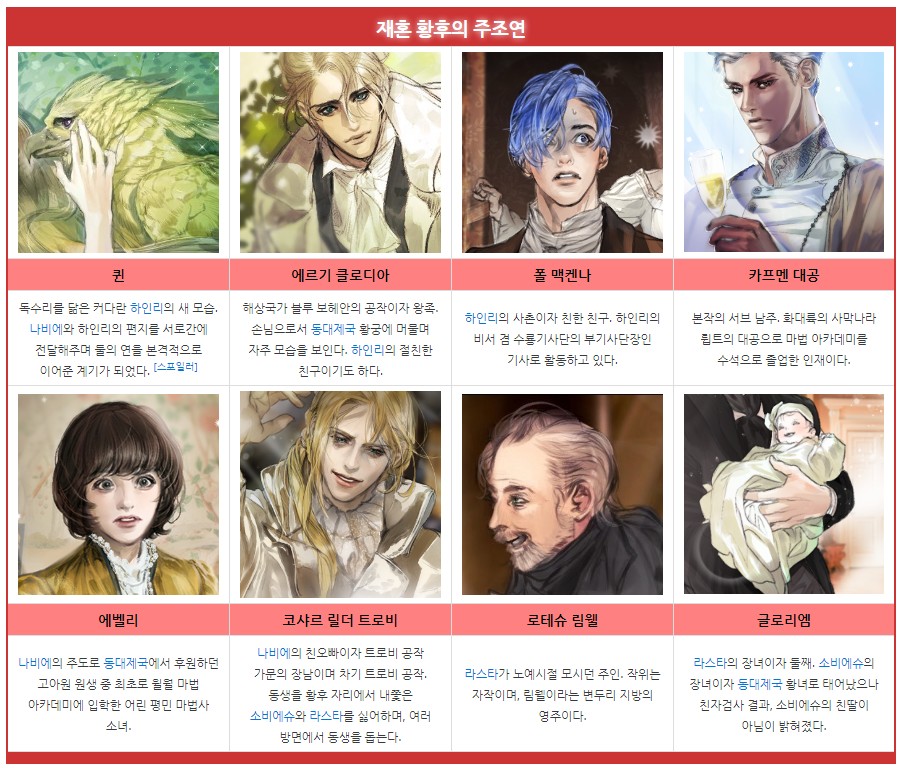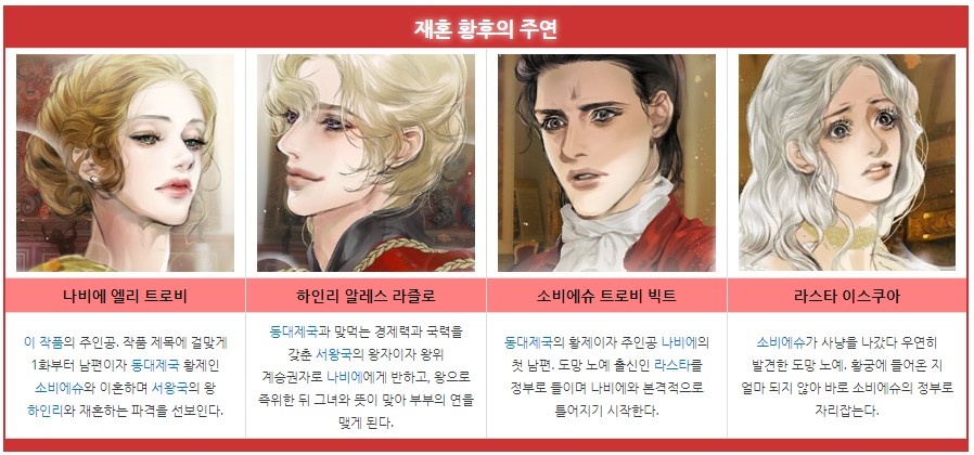 웹툰 재혼황후 등장인물 주연 조연