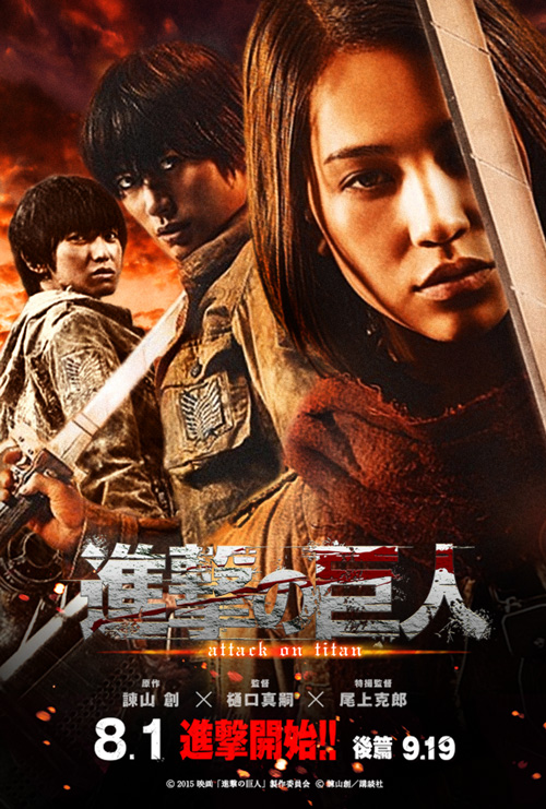 | ハンジ・・・石原さとみ 이시하라 사토미 サシャ・・・桜庭ななみ 사쿠라바 나나미 フクシ・・・渡辺秀 リル・・・武田梨奈 타케다 리나 イズル・・・平岡祐太 히라오카 유타 アルミン・アルレルト・・・本郷奏多 혼고 카나타 ユノヒラ・・・神尾佑 카미오 유우 ヒアナ・・・水崎綾女 미사키 아야메 |