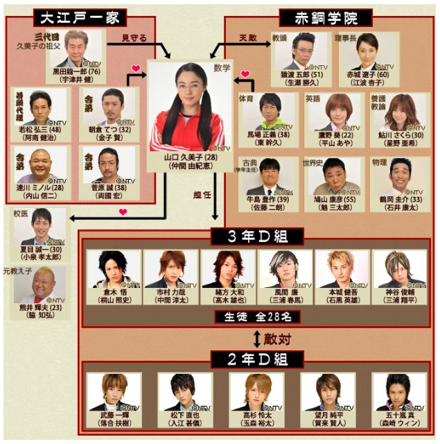 | 山口久美子…仲間由紀恵 나카마 유키에 猿渡五郎…生瀬勝久 나마세 카츠히사 緒方大和…髙木雄也 타카키 유야 風間廉…三浦春馬 미우라 하루마 本城健吾…石黒英雄 이시구로 히데오 市村力哉…中間淳太 나카마 준타 倉木悟…桐山照史 키리야마 아키토 神谷俊輔…三浦翔平 미우라 쇼헤이 |