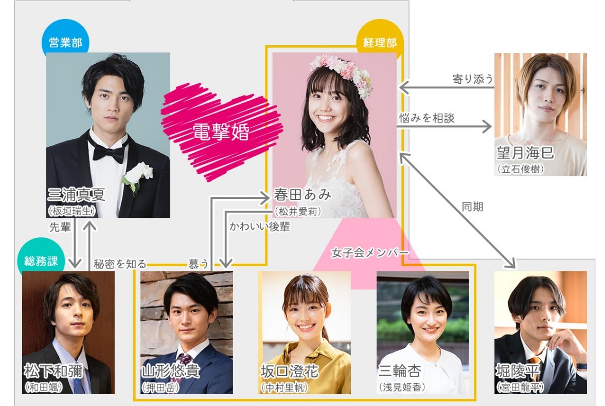 당일결혼을 주위에 털어놓지 못한 채 비밀스러운 사내연애 상태가 되어버립니다.그리고 한여름의 동료·마츠시타 카즈야(와다하야)나 아미의 동기·야마가타 유우키(오시타 다케시), 맛사지사·모치즈키 카즈키 카즈키(타테이시 토시키)가 2명의 변화를 눈치채기 시작했습니다…!? 거짓말 투성이 신혼 생활, 파란의 시작입니다!?
