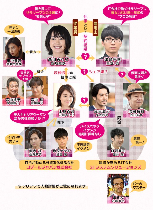 맑게 전업주부로서 "취직"하게 된 모리야마 미쿠리(니이가키 유이) 입니다.고용주인 남편·츠사키 히라타다(호시노 겐)와의 "계약결혼"이 주위에 들키지 않게 하려면 , 세심한 주위를 기울이지 않으면 안됩니다.단지 고용 관계 때문에, 피로연이나 결혼식을 피하고 싶은 2명이지만, 조속히 「결혼식을 올리지 않는 것을 주위에 어떻게 설명할 것인가」라고 하는 문제가 부상.